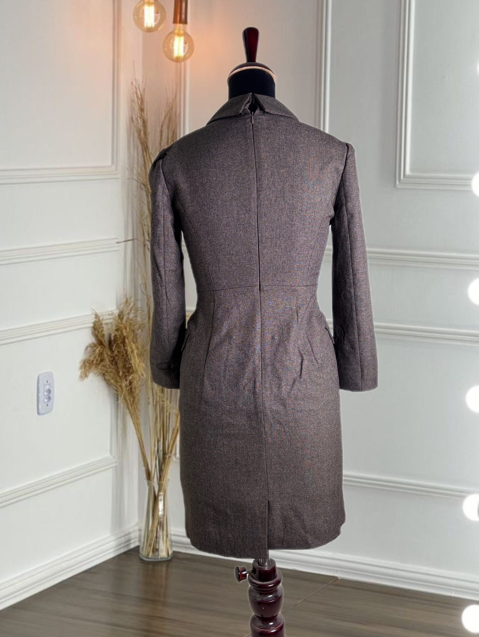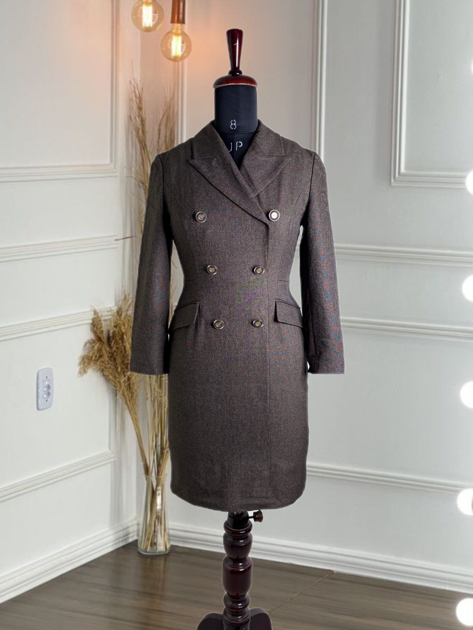 Command attention with this sophisticated double-breasted blazer dress. Tailored to perfection, it blends the sharp structure of a blazer with the elegance of a dress, creating a versatile piece perfect for office meetings, formal events, or evening gatherings.